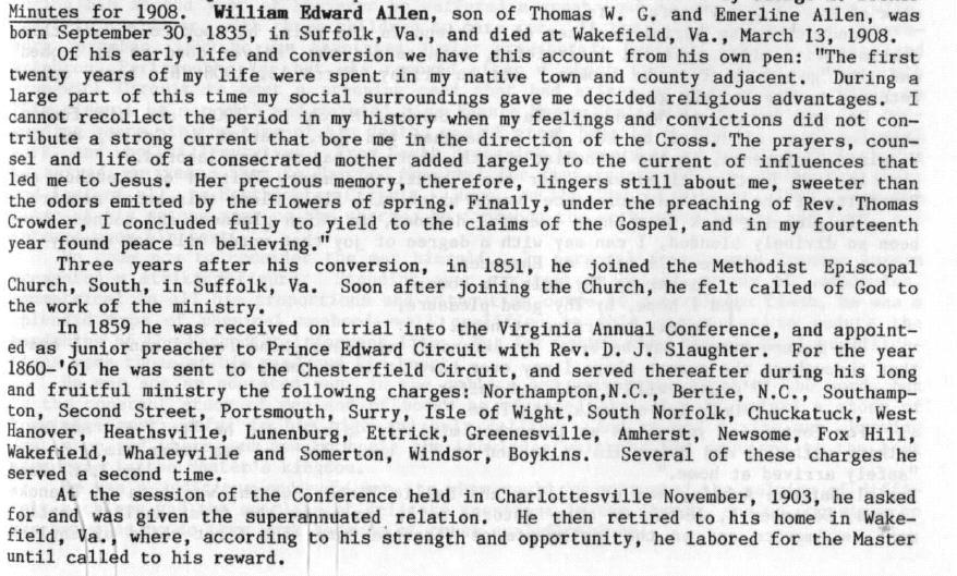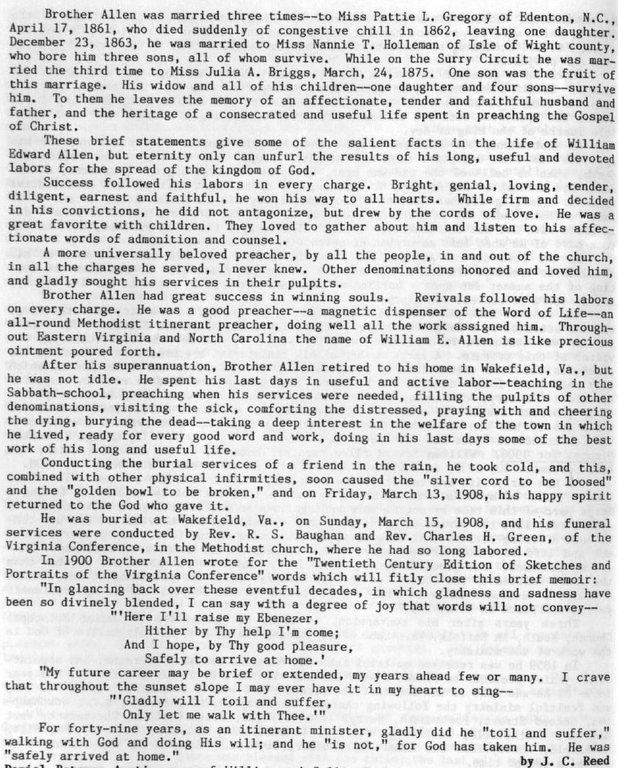 William Edward Allen biography - Text Images from "Memoirs -- 200 Years" - Soldiers of the Cross, 1785-1987" by W.D. Keene, Jr.