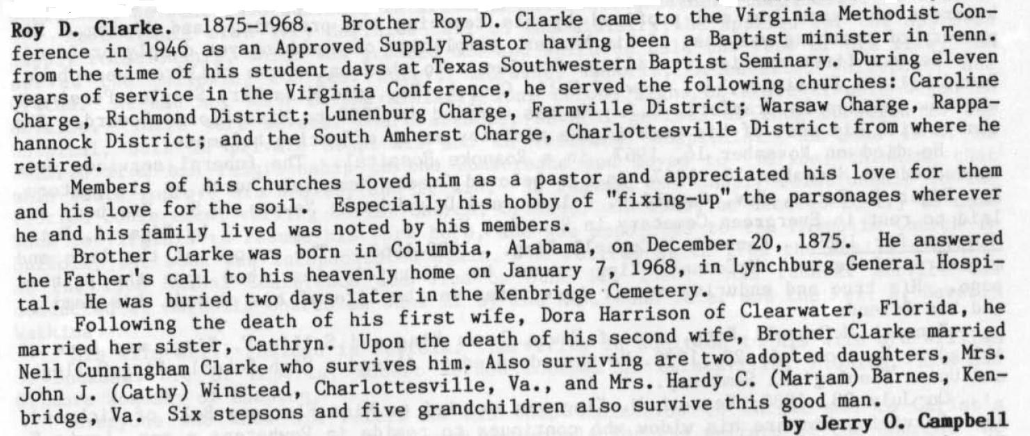 R. D. Clarke biography - Text Images from "Memoirs -- 200 Years" - Soldiers of the Cross, 1785-1987" by W.D. Keene, Jr.