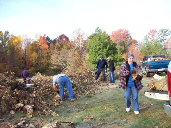 gathered at the parsonage to cut and deliver wood to people in the neighborhood.
