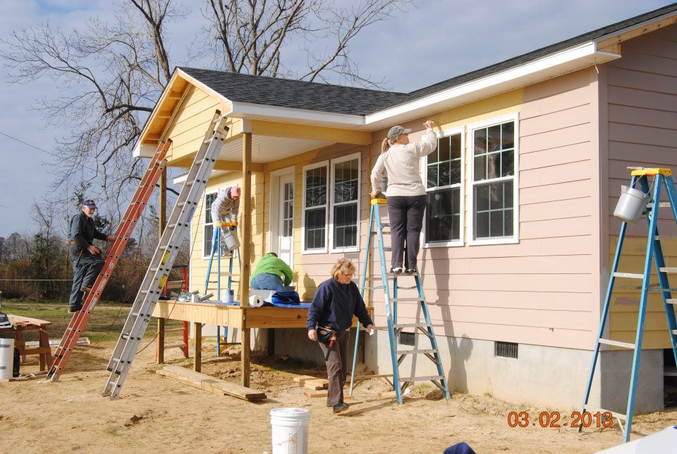 A team of missionaries sponsored by the Lunenburg Charge (Farmville District) engaged in a four day home construction project in Aurora NC. The original home was destroyed by Hurricane Irene in August, 2011. The 16 – person ecumenical team included nine members of Antioch and Williams UMC’s; seven others represented six congregations from four denominations. Charge members contributed nearly $1,000 in support of the project. This is the first multi-day, out-of-area mission of the Lunenburg Charge. The Aurora project is an initiative of UMCOR’s disaster response program.