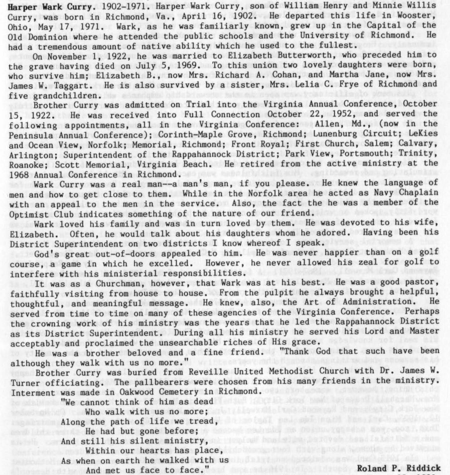 H. W. Curry biography - Text Images from "Memoirs -- 200 Years" - Soldiers of the Cross, 1785-1987" by W.D. Keene, Jr.
